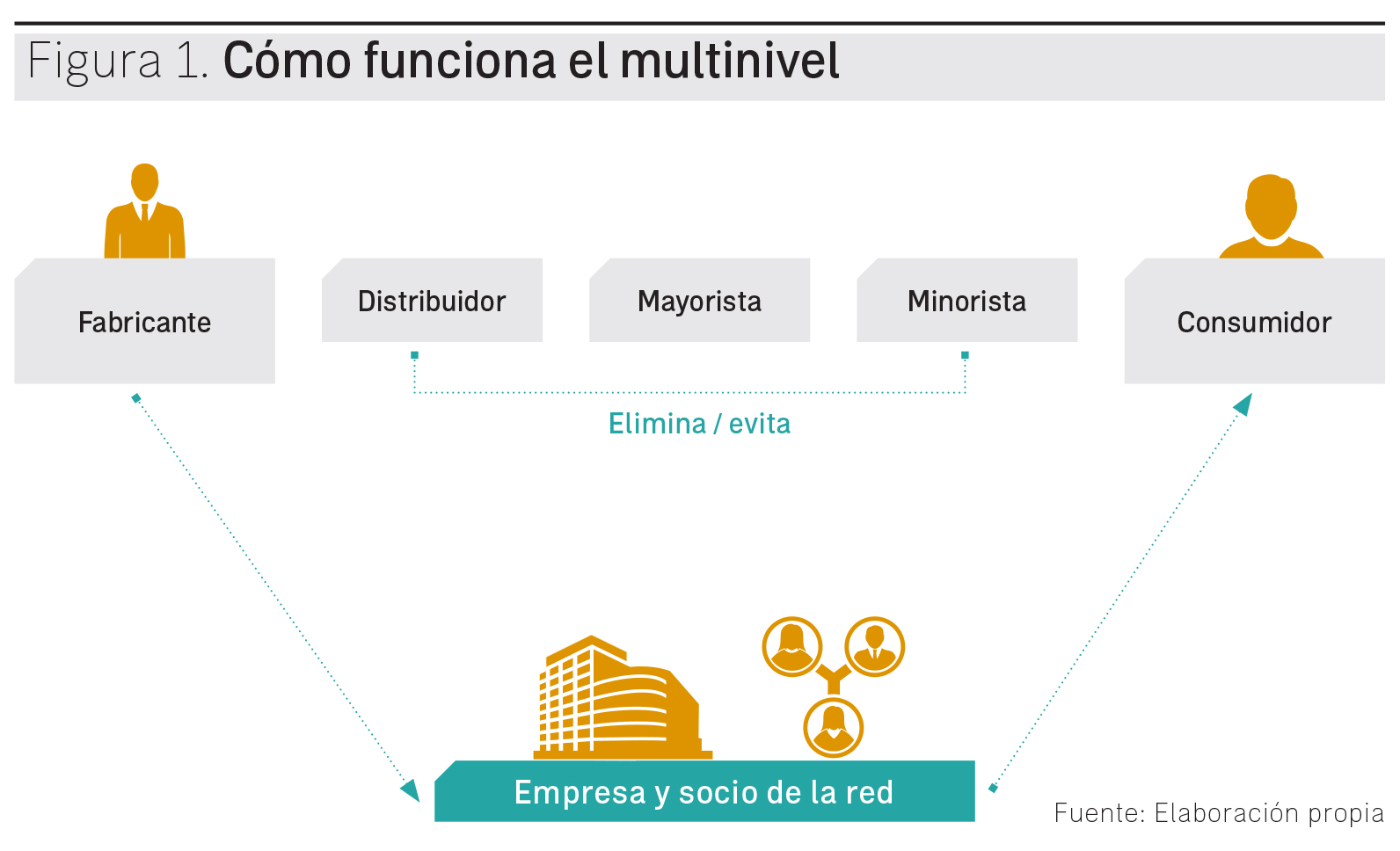 El network marketing es un sistema de comercialización que supera el concepto tradicional de venta directa, en el que un vendedor individual era capaz de obtener ventas y con ello beneficios, a través únicamente de su propia capacidad. En la venta multinivel, el vendedor forja redes de relaciones que detonan la comercialización de los productos, rodeándose de un grupo de vendedores que, a su vez, participan y colaboran en las ventas totales, eliminando los intermediarios y haciendo irrelevante la noción de establecimiento comercial.